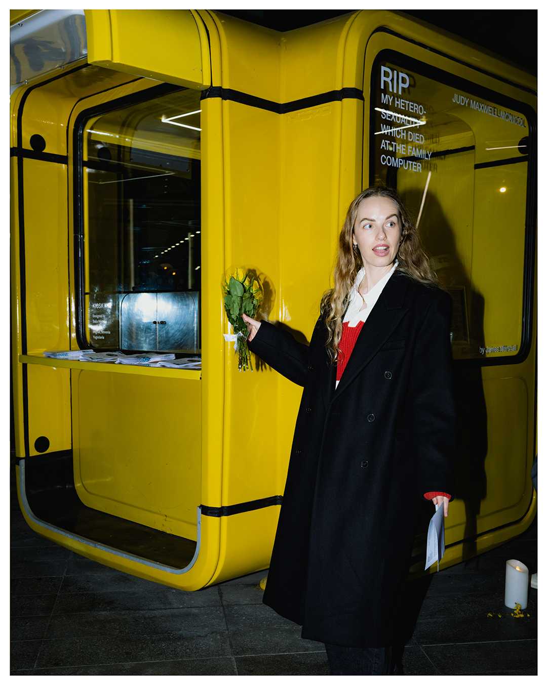 A public installation presented at Portals in Spitalfields, marking the “death” of the artist’s heterosexuality through a humorous, memorial-like sculpture